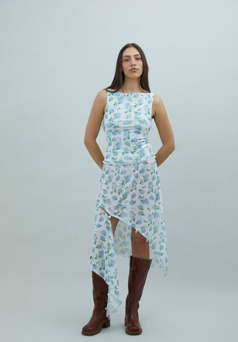 HYDRANGEA ASYMETRIC MESH SKIRT
